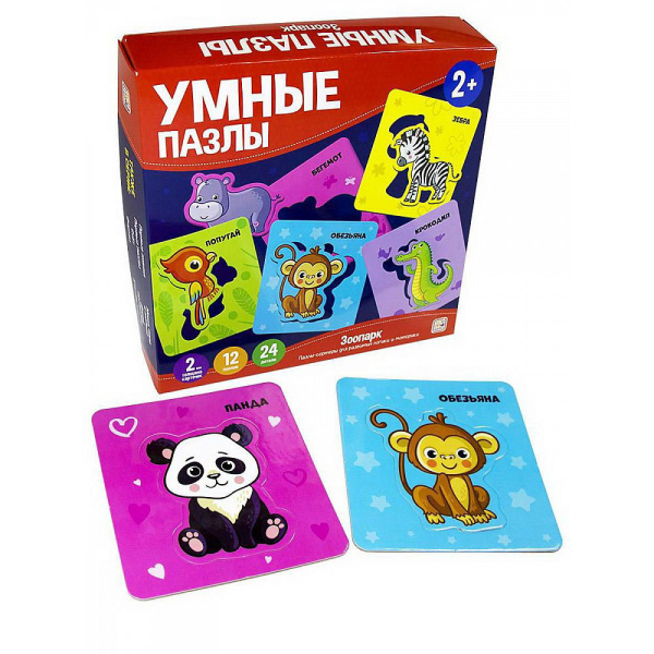 —Умные пазлы 'Зоопарк',12 пазлов, 24 детали, 4-627-131-688-417