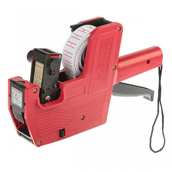 Этикет-пистолет "deVENTE" 1-строчный, 8 символов, для прямоугольных этикеток 21x12 мм, красный цвет корпуса.