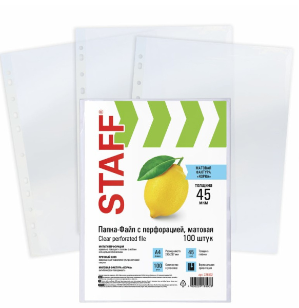 Файлы А4, 'STAFF', матовые, 45 мкм, (100 шт;уп), 226832
