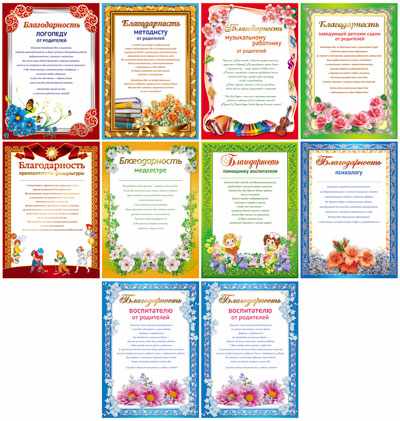 Комплект 'Благодарностей педагогам детского сада', (9 шт;уп), КС-11337