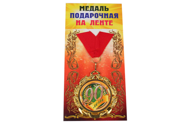 —Медали именинникам на ленте металлические 90 лет D=6,5 см.