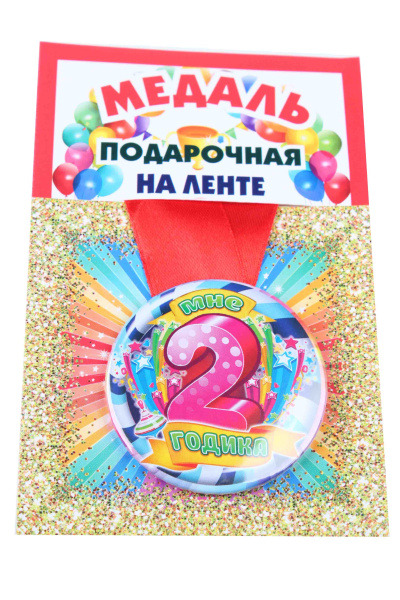 —Медали именинникам на ленте пластиковые Мне 2 годика D=5,5 см.