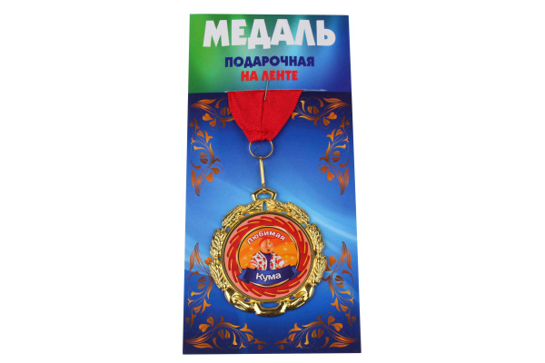 —Медаль подарочная на ленте металлическая Любимая кума D=6,5 см.