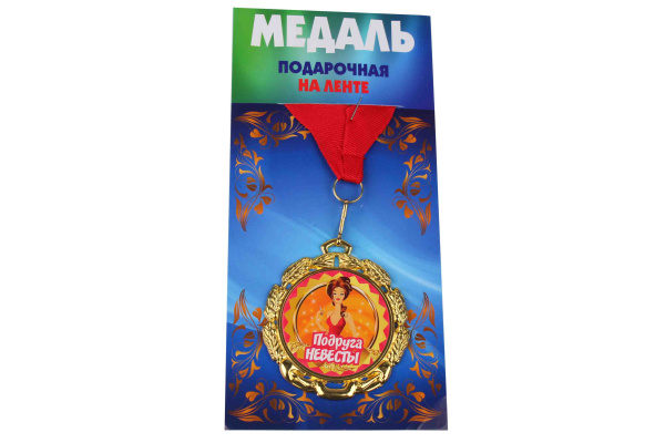 —Медаль подарочная на ленте металлическая Подруга невесты D=6,5 см.