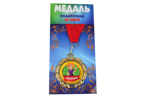 —Медаль подарочная на ленте металлическая Свекровь D=6,5 см.