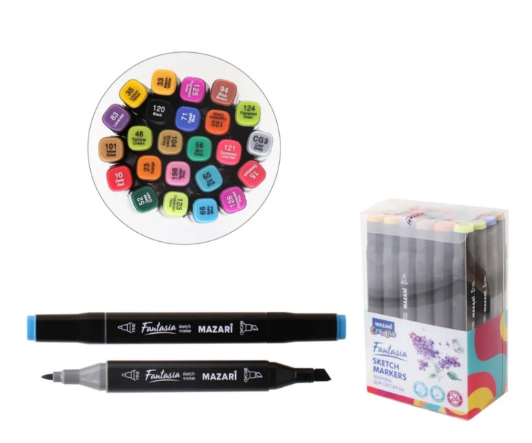 —Набор маркеров для скетчинга двусторонние FANTASIA, 24 цвета, Flowers colors, M-15022-24