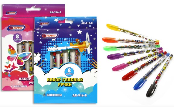—Набор гелевых ручек, 8 цветов, с блестками, AR-916-8