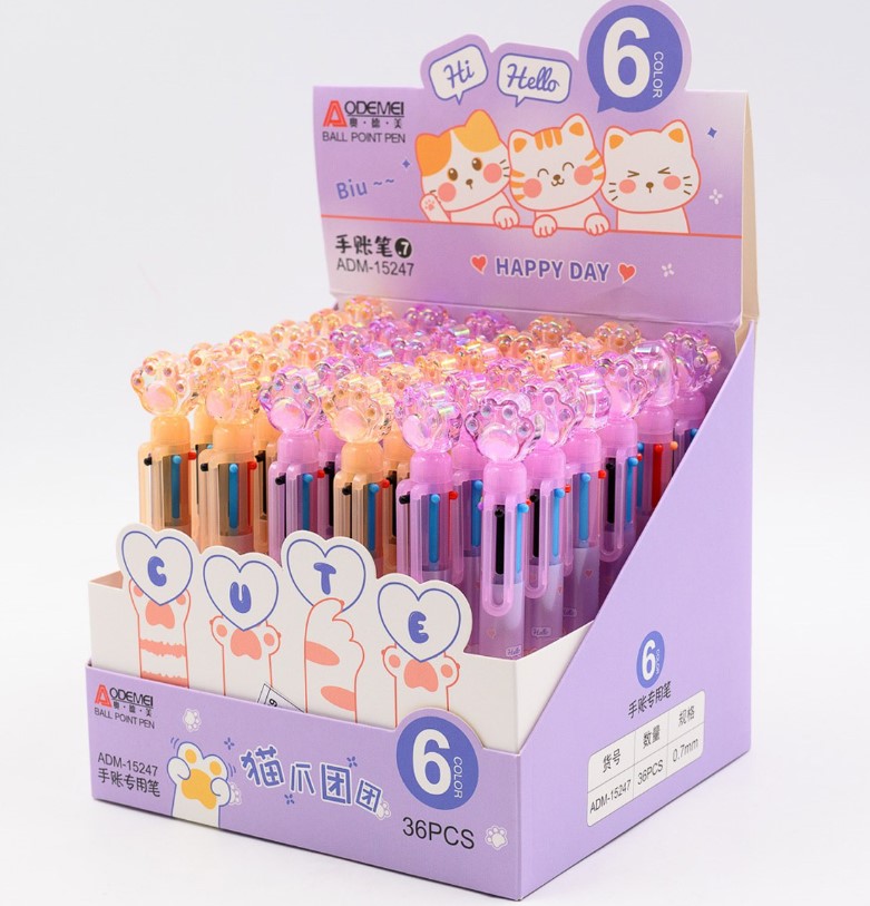 Ручка шариковая автоматическая, 6 цветов, ЛАПКА, 15247