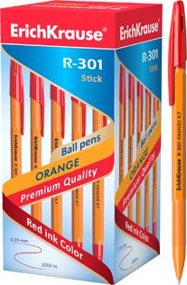 —Ручка шариковая ErichKrause 'R-301', красная, 0.7 мм, корпус желтый, 43196