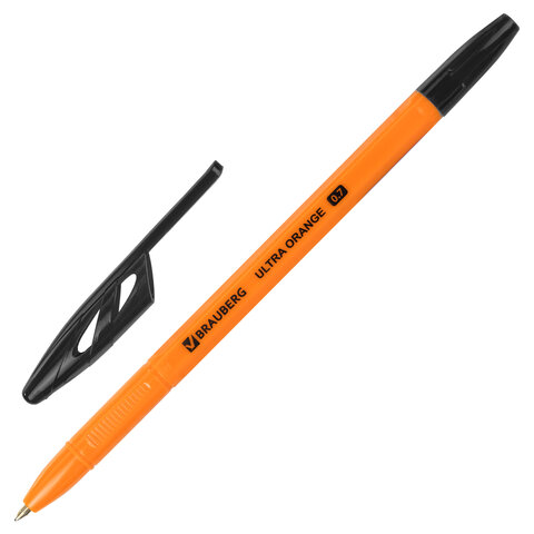 —Ручка шариковая BRAUBERG 'ULTRA ORANGE', черная, узел 0,7 мм, 143563