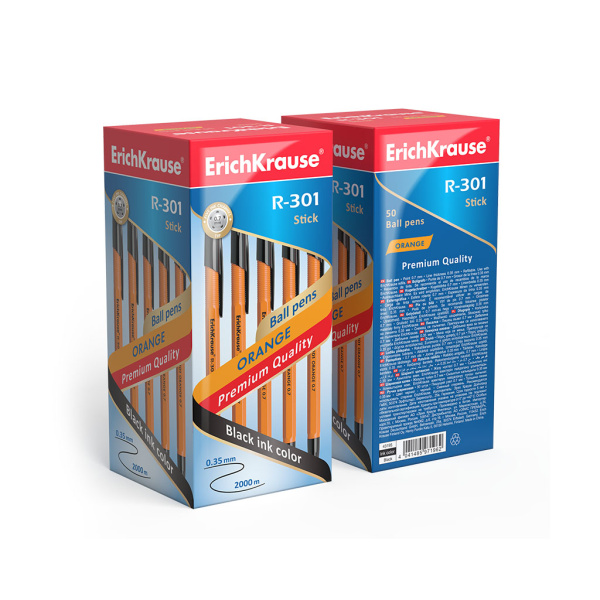 —Ручка шариковая ErichKrause 'R-301', черный, 0.7 мм, корпус желтый, 43195
