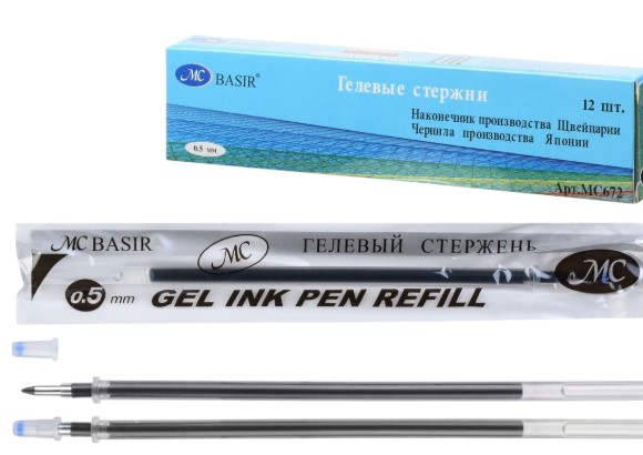 —Стержень гелевый 'Basir' 129 мм, черный 0,5 мм, защитный колпачок, MC-7045;черный