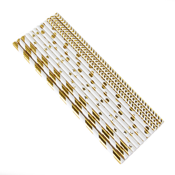 Трубочки для коктейлей, Золотой микс, Белый;Золото, металлик, (12 шт;уп), 6231316