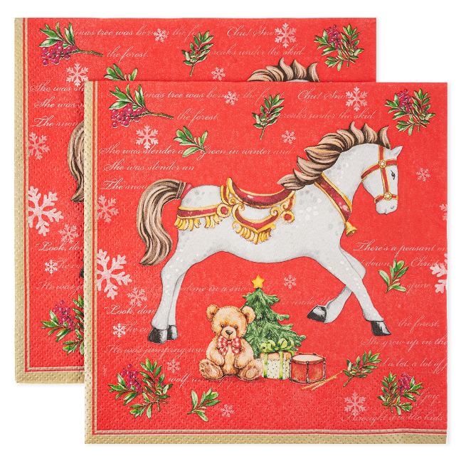Сервировочные салфетки, Новогодняя лошадка, Красный, 33х33 см, 20 шт, 25402/1 н-й