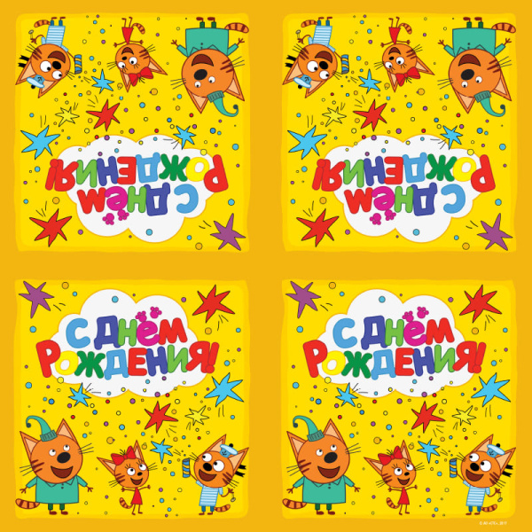 —Салфетки 'Три кота. С днём рождения!', жёлтые, 33х33 см., (20 шт;уп), 6014875
