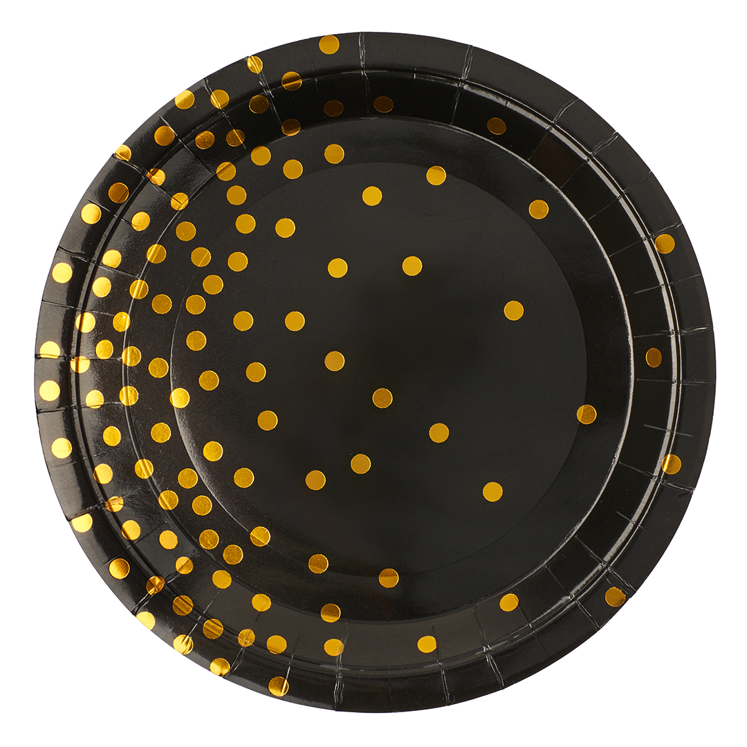 Тарелки Волна веселья (9'';23 см), Золотое конфетти, Черный;Золото, Металлик, (6 шт;уп), 6231895