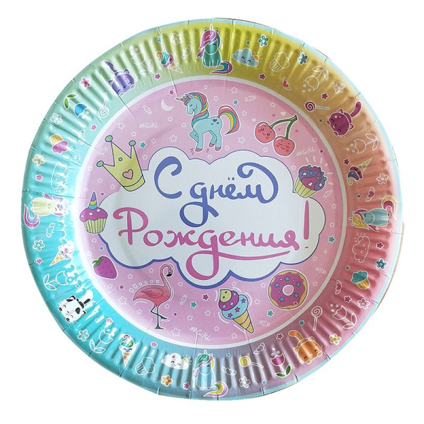 Набор тарелок бумажных Веселуха 'С Днем рождения', d- 23 см., 6 шт., европодвес, 701043
