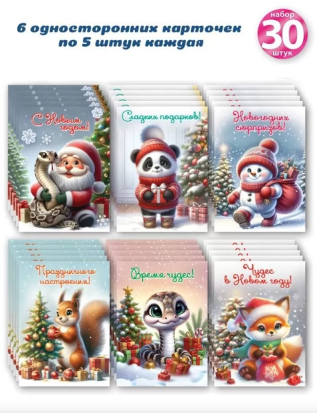 —Набор новогодних карточек, (30 шт;уп), 9500365