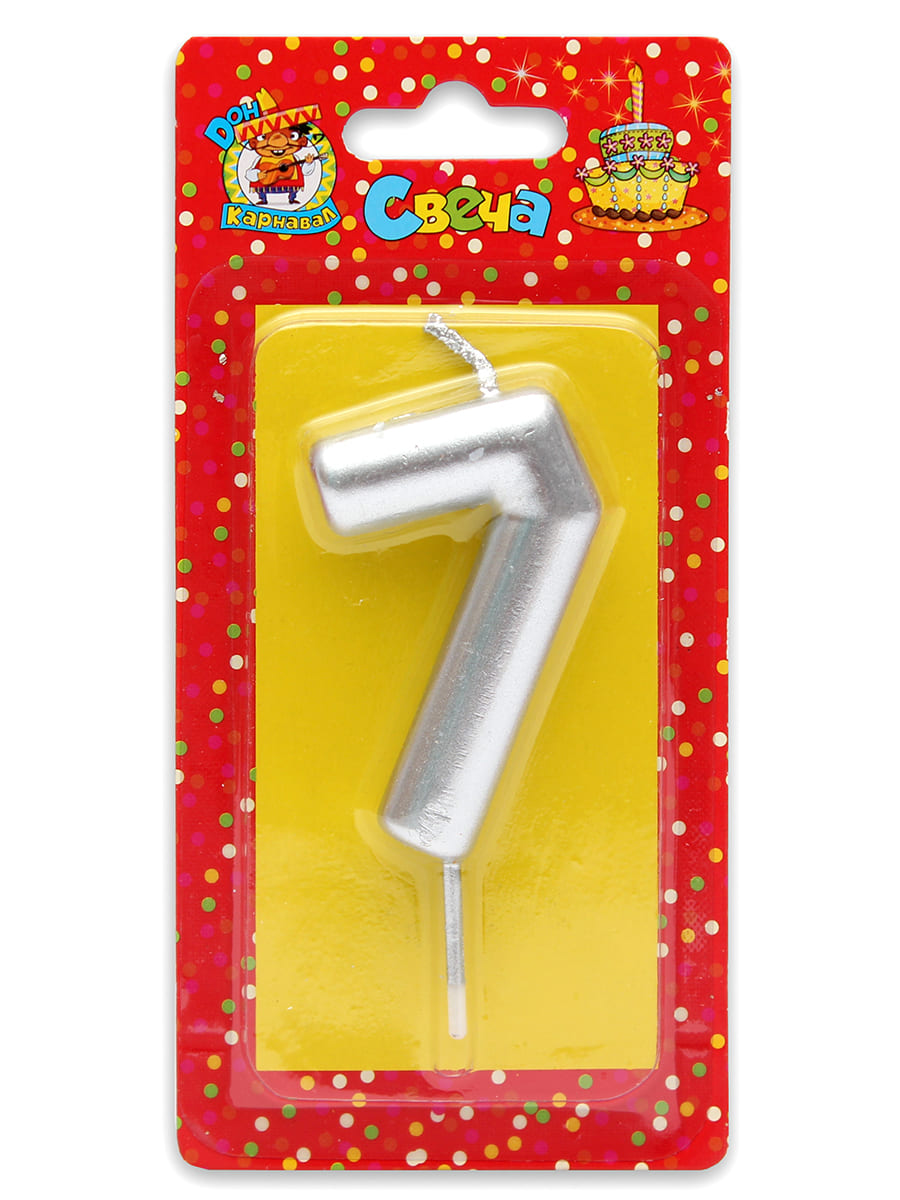 —Свеча для торта 'Цифра 7. Серебряная' Миленд, картон. уп., европодвес, С-1815;5989