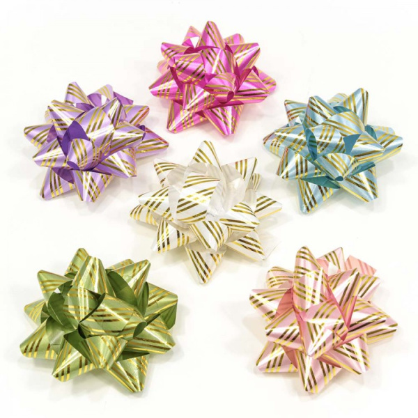 —Бант-звезда OMG 'Золотая полоска' 7,6 см, 6 шт, на липучке, ассорти, OM500565-76