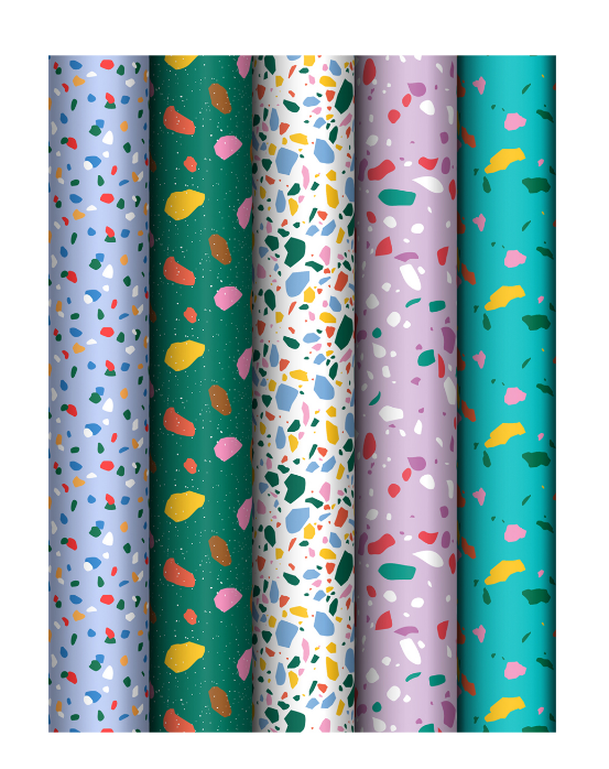 Упаковочная бумага глянц. 70х100см, MESHU Terrazzo, 80 г;м2, ассорти, 5 дизайнов, MS_62829