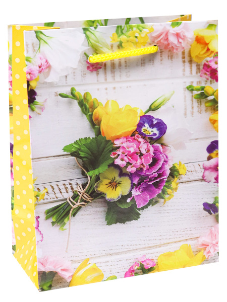 Пакет подарочный с глянцевой ламинацией 26,4x32,7x8 см (L) Нежная цветоч. композиц, 128г ПАК-8421