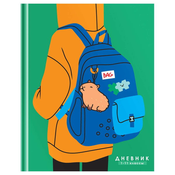 Дневник 1-11 класс 40 л., твердый, BG 'Сapybara backpack', глянцевая ламинация, 12625