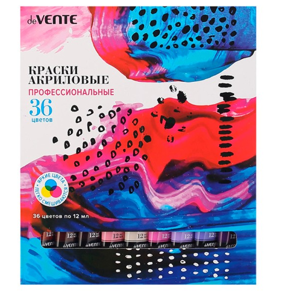 —Краски акриловые профессиональные художественные 'deVENTE' 36 цветов по 12 мл, 8170301