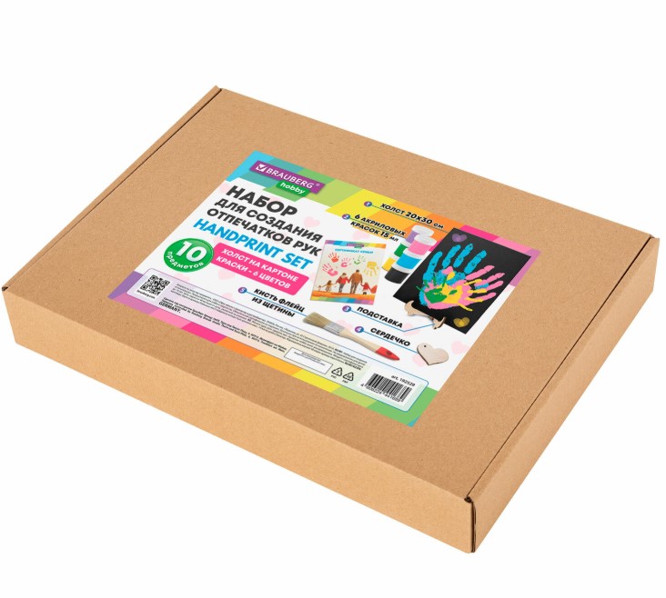 —Набор отпечатки рук- холст 20х30 см, акрил 6 цветов, кисть + сертификат и подставка, 192529
