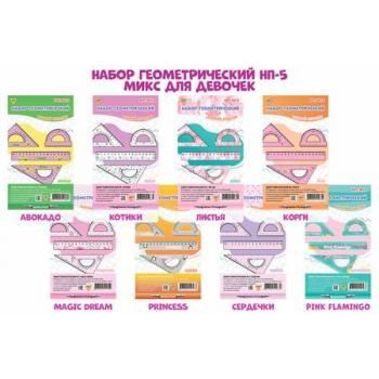 —Набор геометрический для девочек (линейка 16 см, транспортир 10 см, треугольник 10 см), НП-5