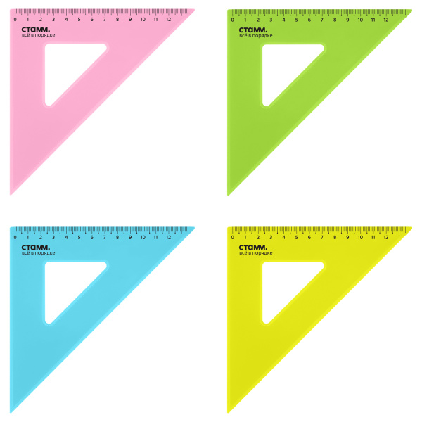 Треугольник 45°, 12 см, СТАММ, пластиковый, прозрачный, неоновые цвета, ассорти, ТК44