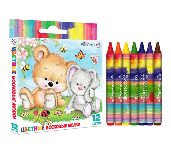 Мелки восковые 12 цв.в карт.коробке с подвесом,  Attomex, 8077812