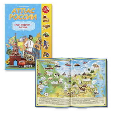—Атлас России 'Наша родина Россия', А4 , 8 листов с наклейками, 978-5-906964-88-5