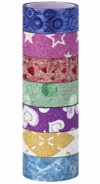 Клейкие ленты полимерные для декора с блестками 'УЗОРЫ', 15 мм х 3 м, 7 цв, ОСТРОВ СОКРОВИЩ, 661718