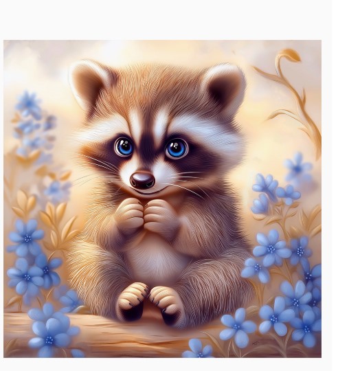 Холст с красками 20х20 см, Голубоглазый енотик, Х-0739