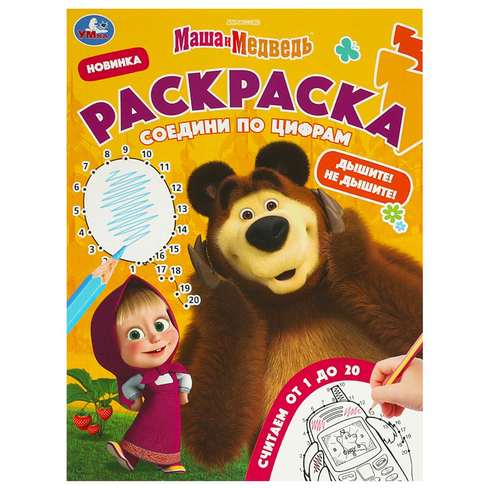 Раскраска соедини по цифрам, А4, Маша и Медведь, 978-5-506-09265-0