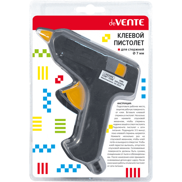 —Клеевой пистолет 'deVENTE' 20 Вт, для стержня Ø 7 мм, 2 стержня в комплекте, 4181500